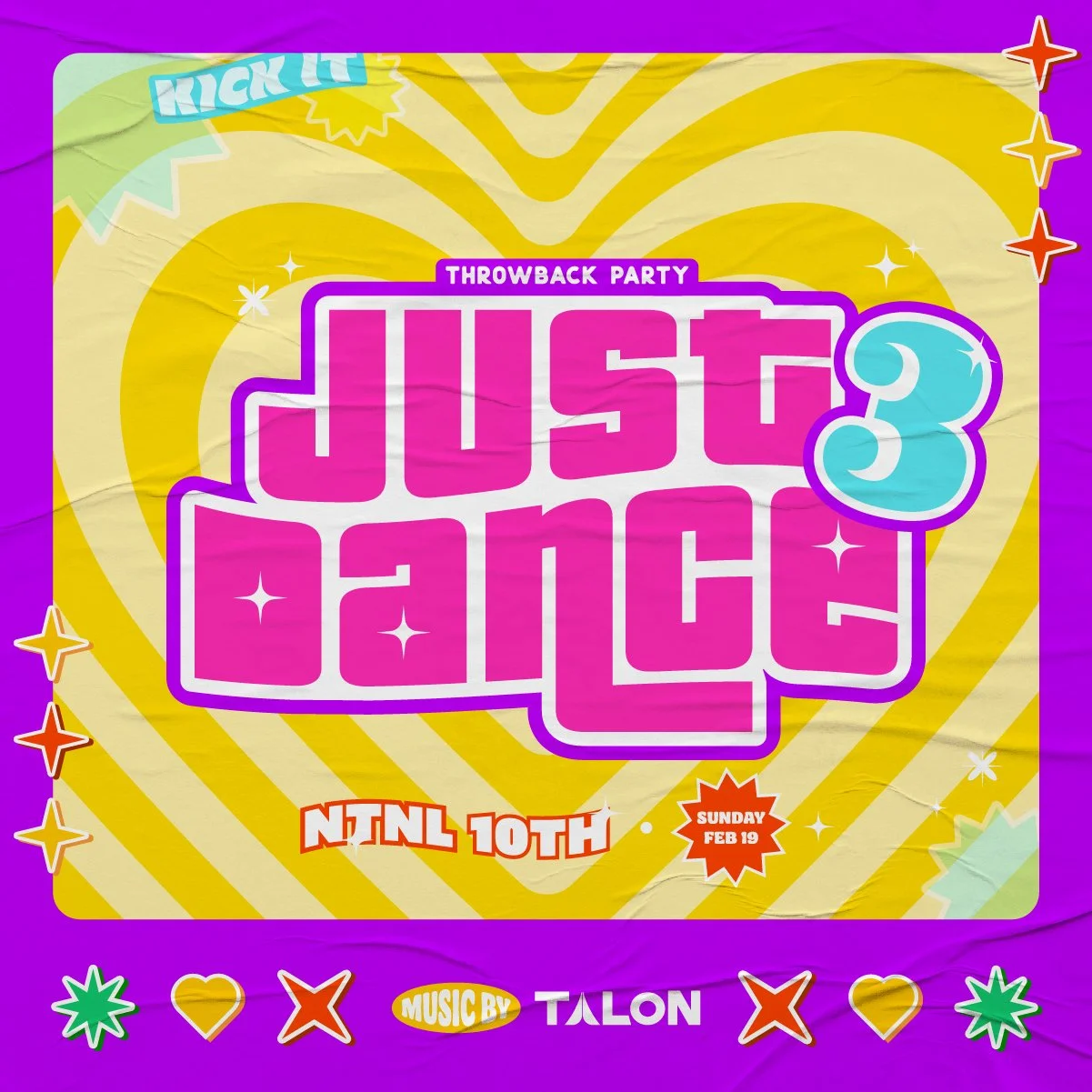 My goal was to capture the vibrant energy and nostalgia dance party brand that plays the iconic ‘90s & early 2000s music. Inspired by neon retro colours, patterns & shapes, I sought to transport audiences back to a time of energy and nostalgia.